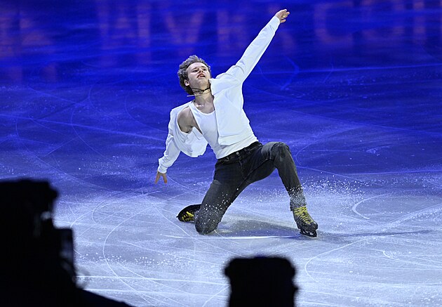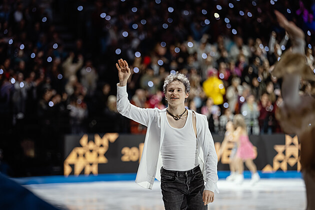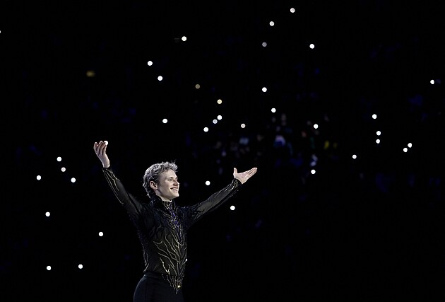 Americký krasobruslař Ilia Malinin při závěrečné exhibici na mistrovství světa v Praze.