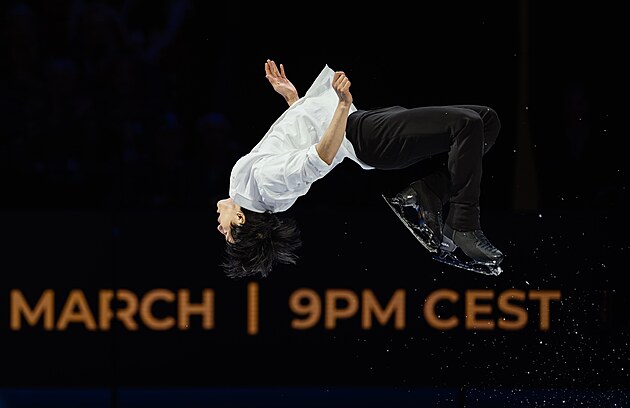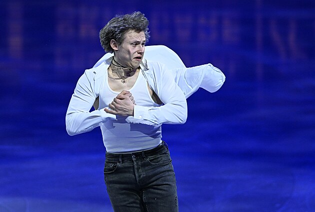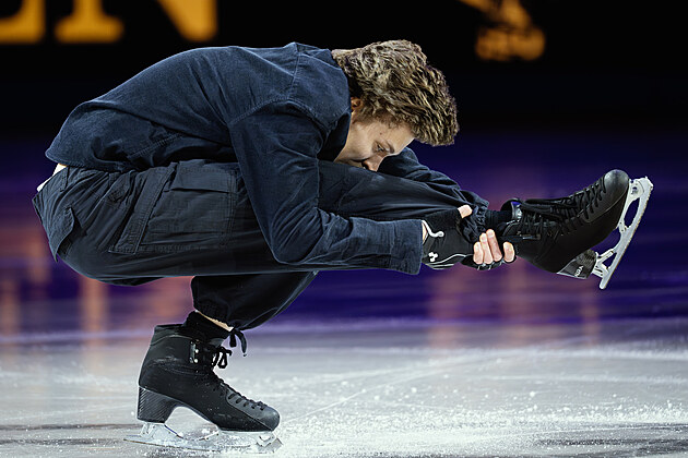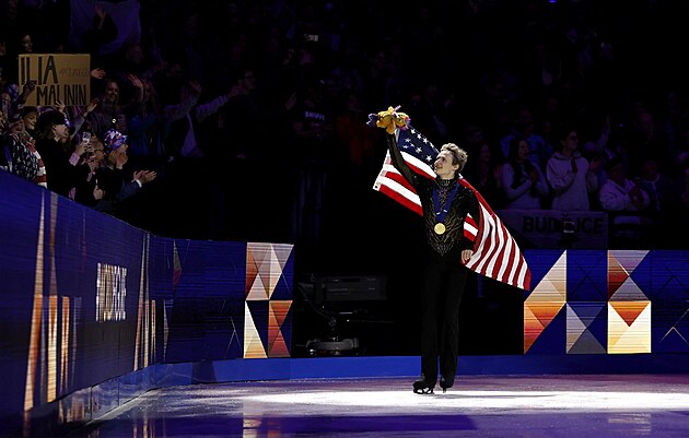 Ilia Malinin z USA během nedělní exhibice na MS v krasobruslení v Praze, 29. března 2026.