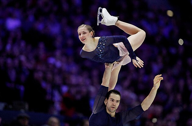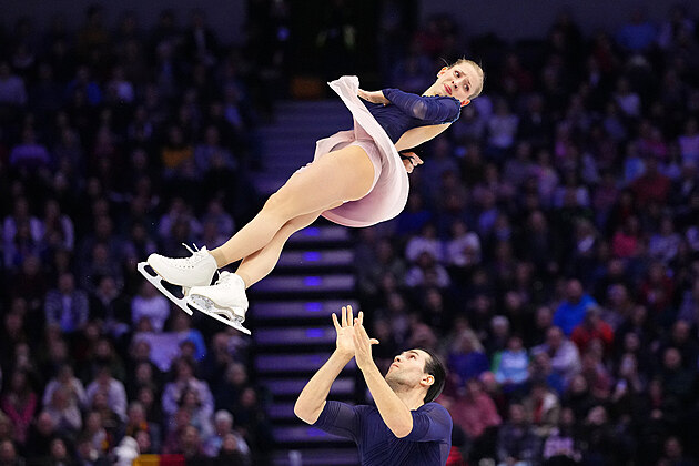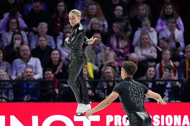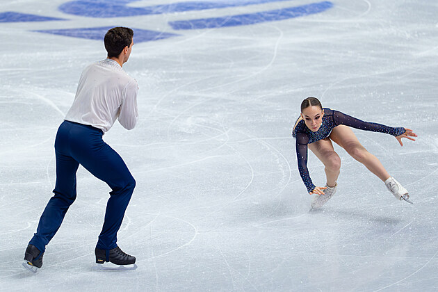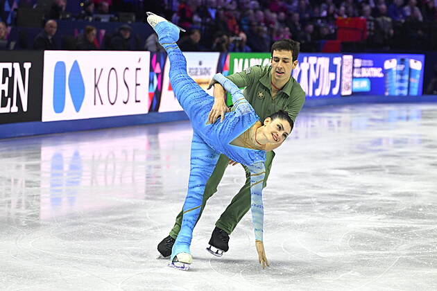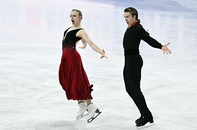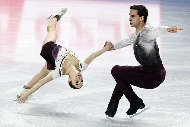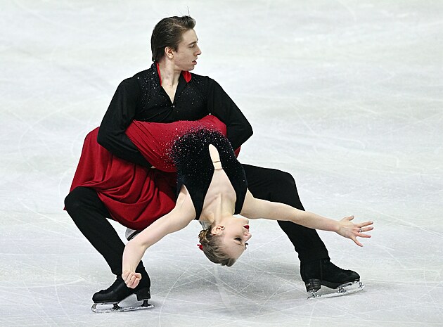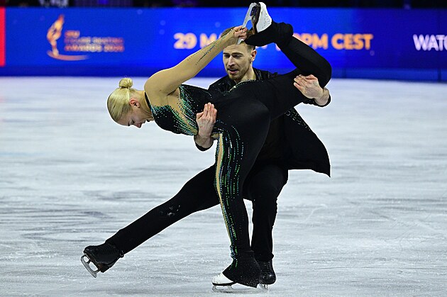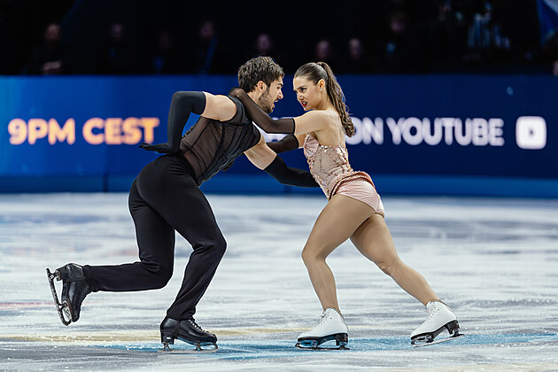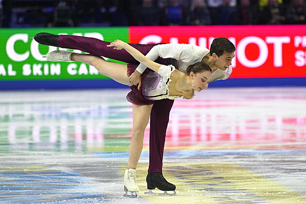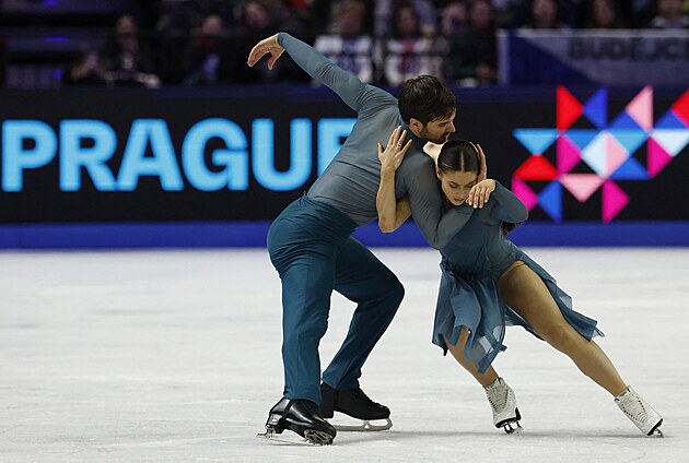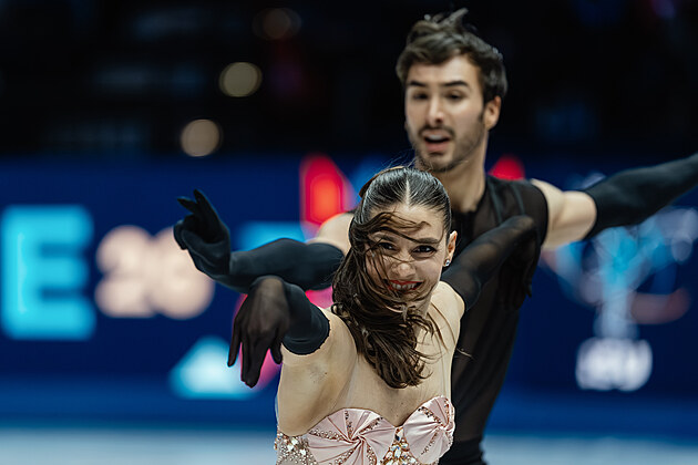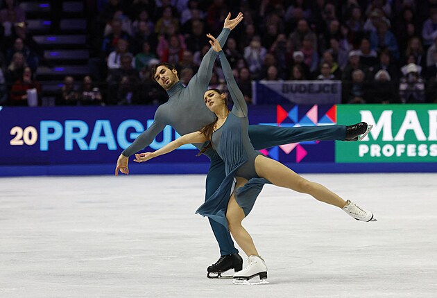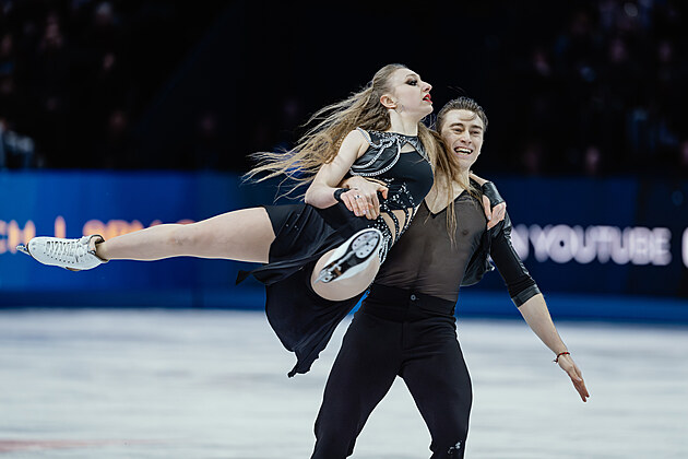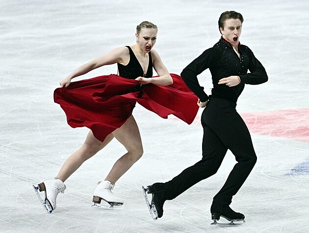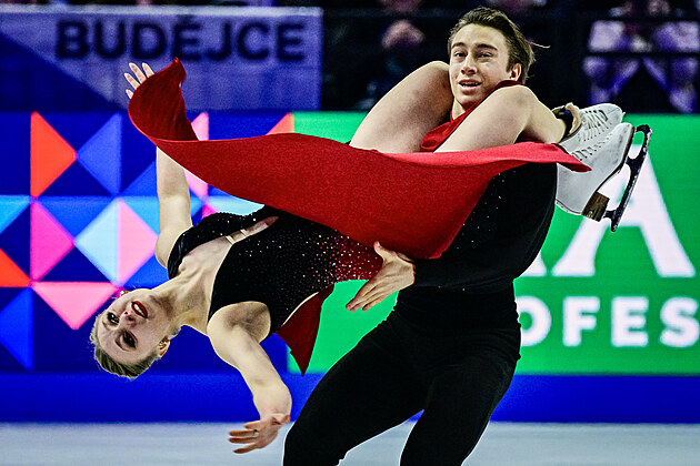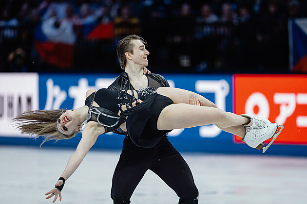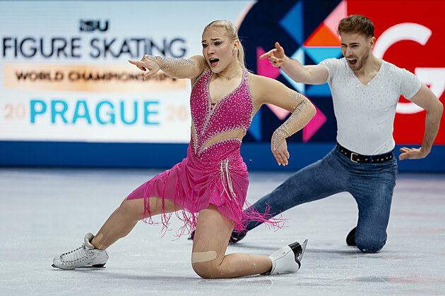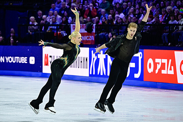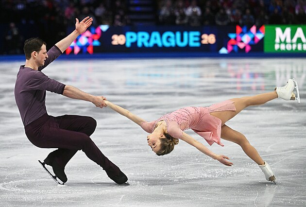 Čeští krasobruslaři Natálie a Filip Taschlerovi při volných tancích na světovém šampionátu v Praze.