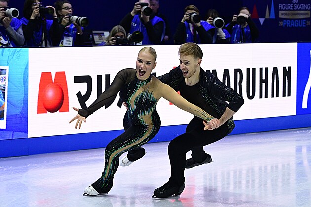 Krasobruslařský pár Laurence Fournierová Beaudryová a Guillaume Cizeron po olympijském vítězství získal za výborný volný tanec také titul mistrů světa v Praze. Francouzská dvojice zvítězila o drtivých 29 bodů.
