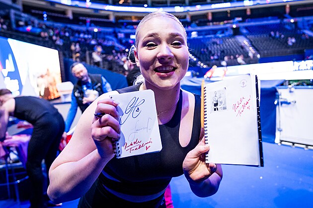 Natálie Taschlerová se po tréninku podepisuje fanouškům.
