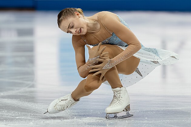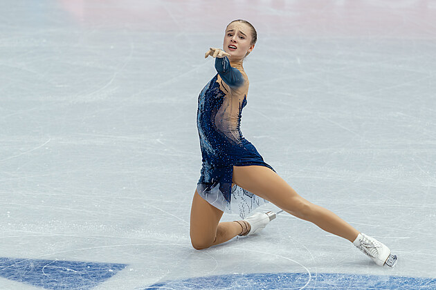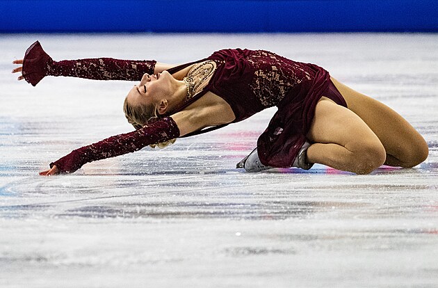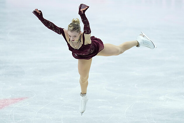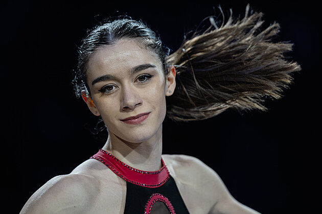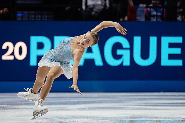 Isabeau Levitová během krátkého programu na mistrovství světa v Praze.
