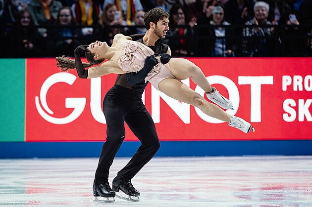 Laurence Fournierová-Beaudryová a Guillaume Cizeron při rytmickém tanci na MS v Praze.