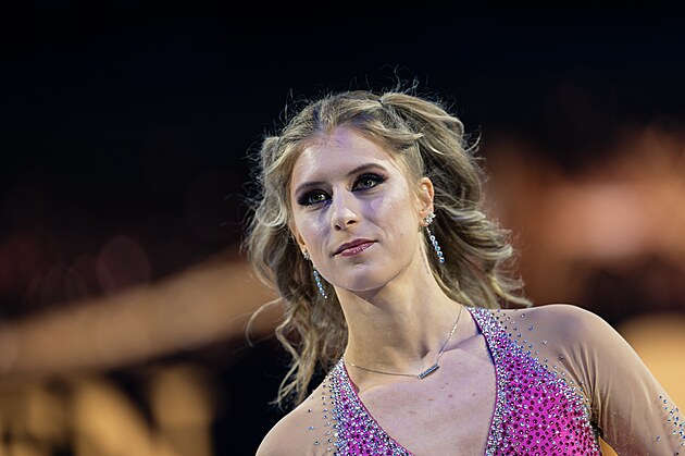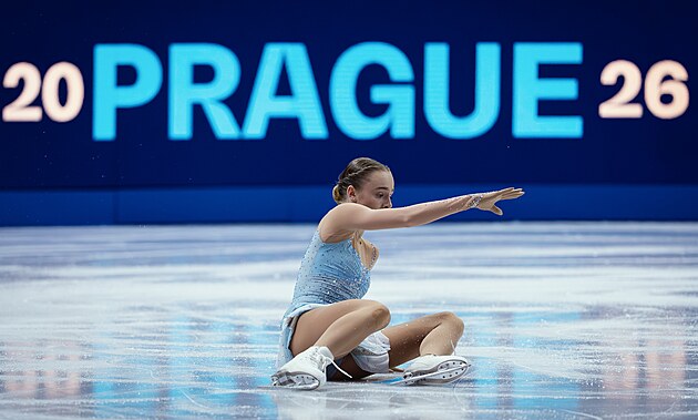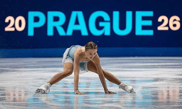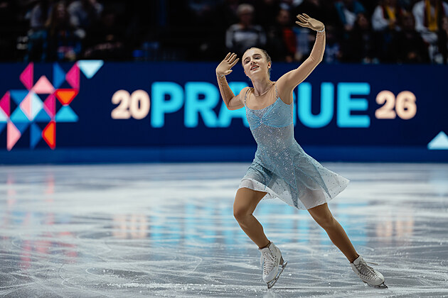 Eliška Březinová během exhibice na MS v krasobruslení v Praze, 29. března 2026.