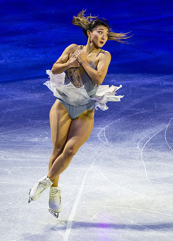 Kaori Sakamotová z Japonska během závěrečné exhibice v O2 areně, 29. března 2026.