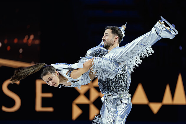 Kateřině Mrázkové a Danielu Mrázkovi zněly při exhibici hity Karla Gotta, Olympiku i Michala Davida, 29. března 2026.