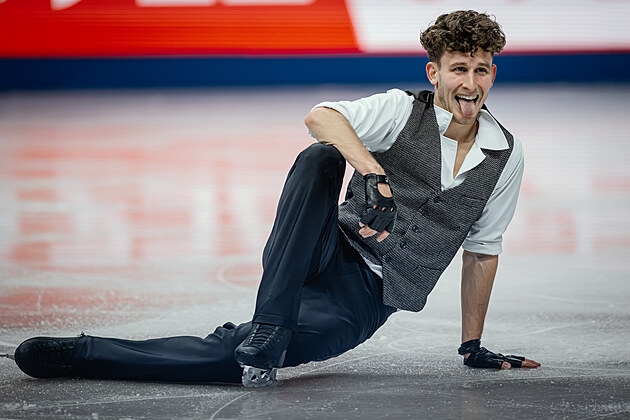 Estonec Aleksandr Selevko na MS v krasobruslení v Praze, 28. března 2026.