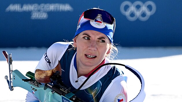 Lucie Charvatová z České republiky v akci během stíhacího závodu žen na 10 km. (15. února 2026)