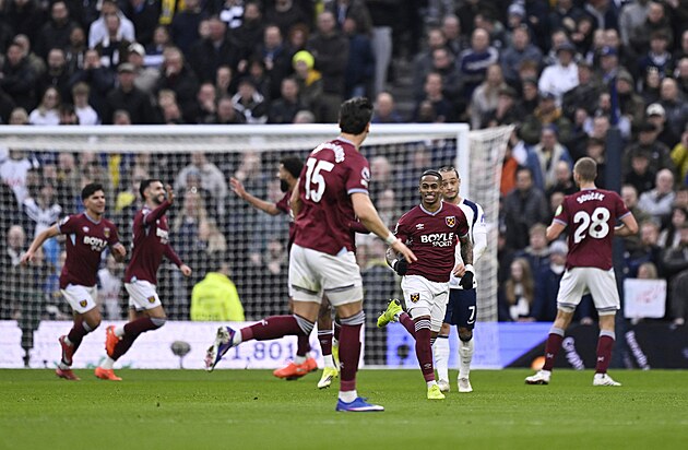Fotbalisté West Hamu se radují z gólu, který vstřelil Crysencio Summerville.
