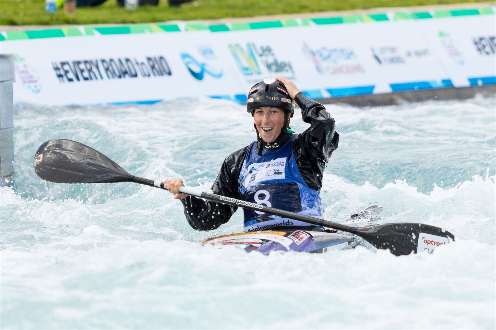 Vodní slalomářka Kateřina Kudějová po dojetí do cíle na mistrovství světa.