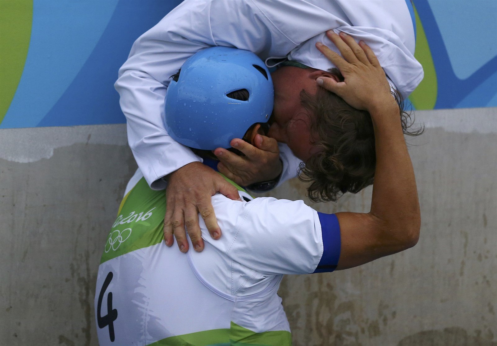 Jiří Prskavec v objetí se svým trenérem a otcem.