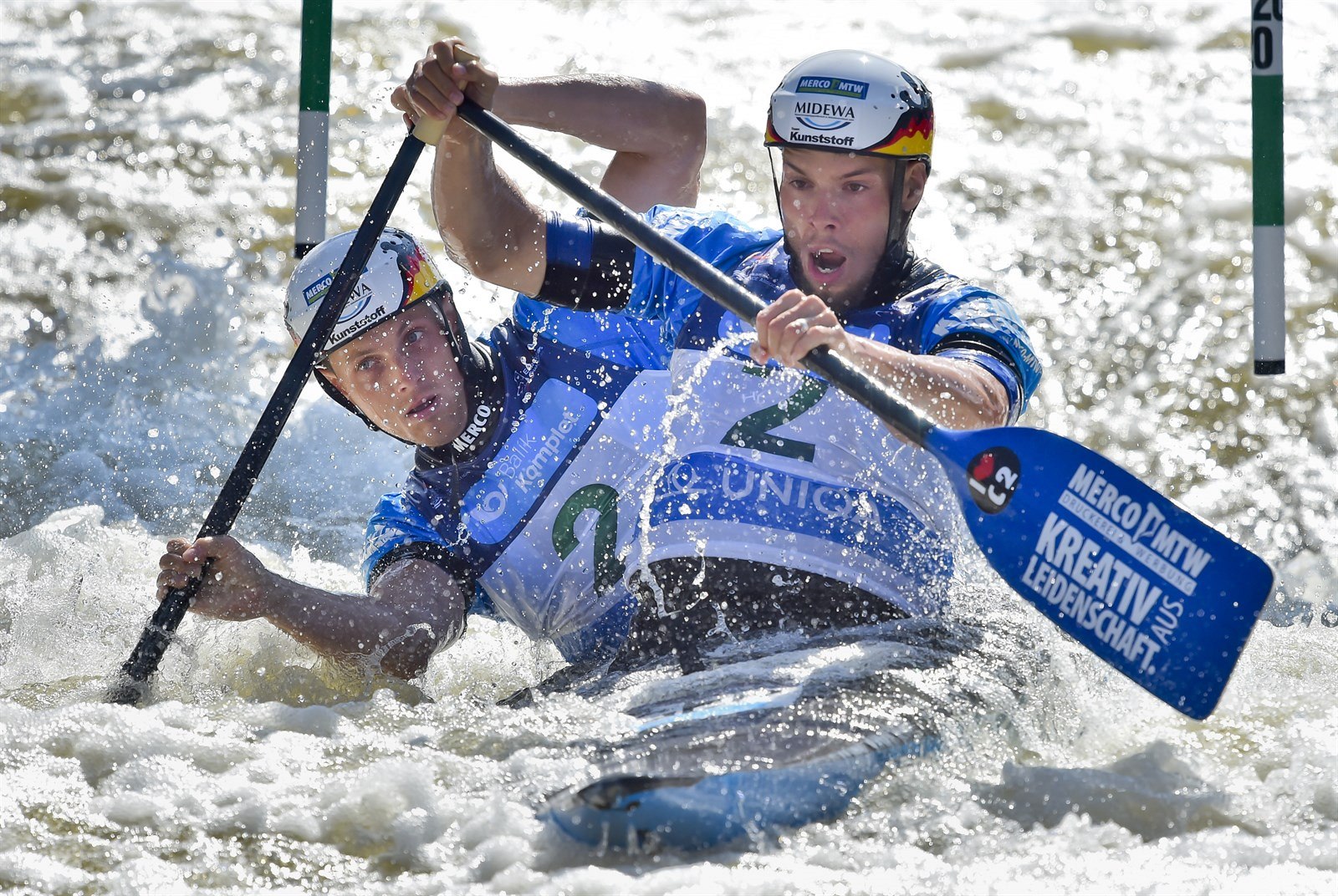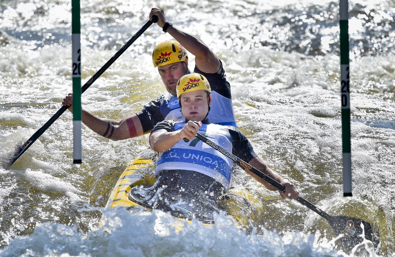 Deblkanoisté Robert Behling a Thomas Becker z Německa při mistrovství Evropy v Praze.