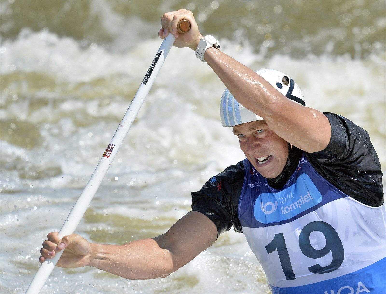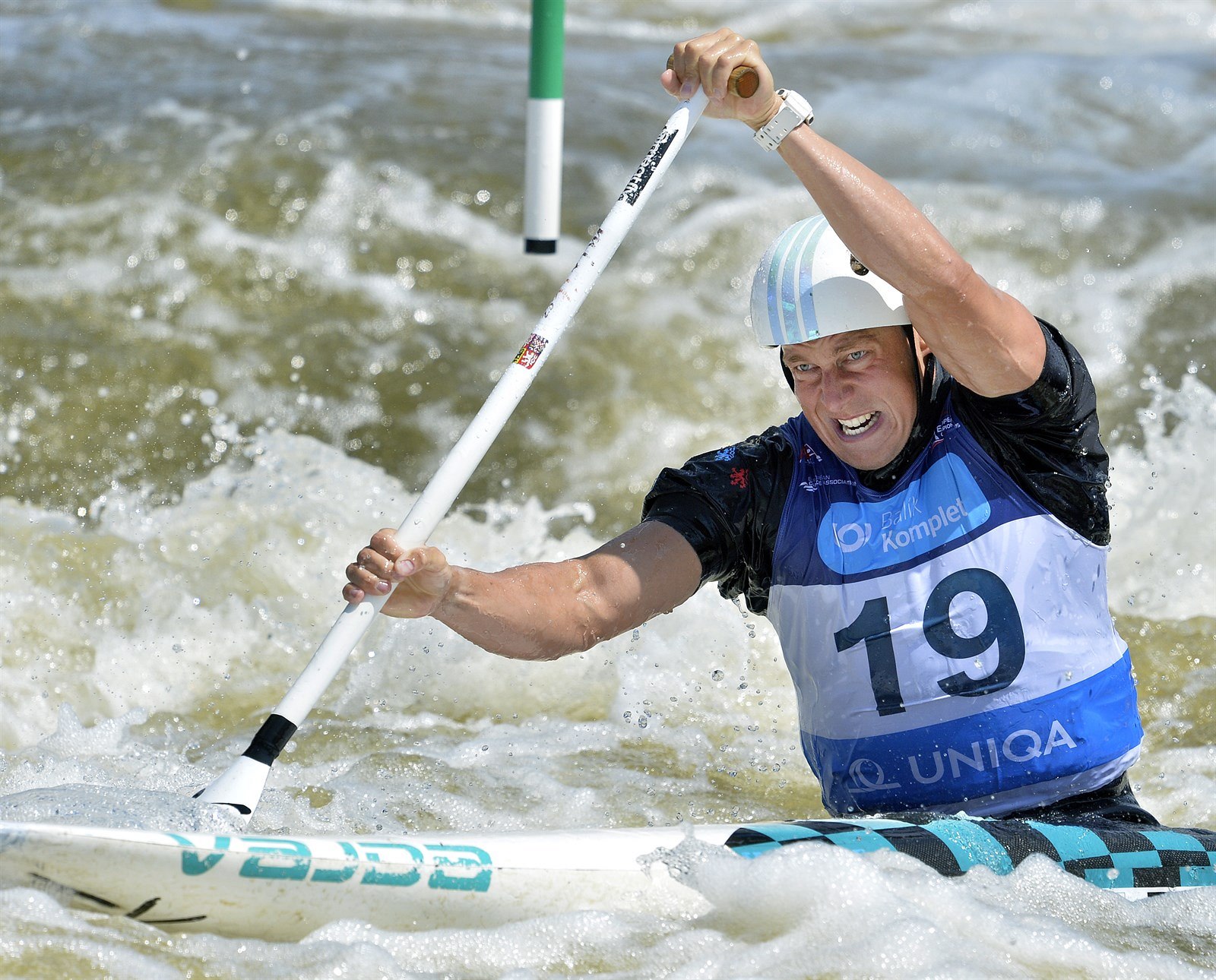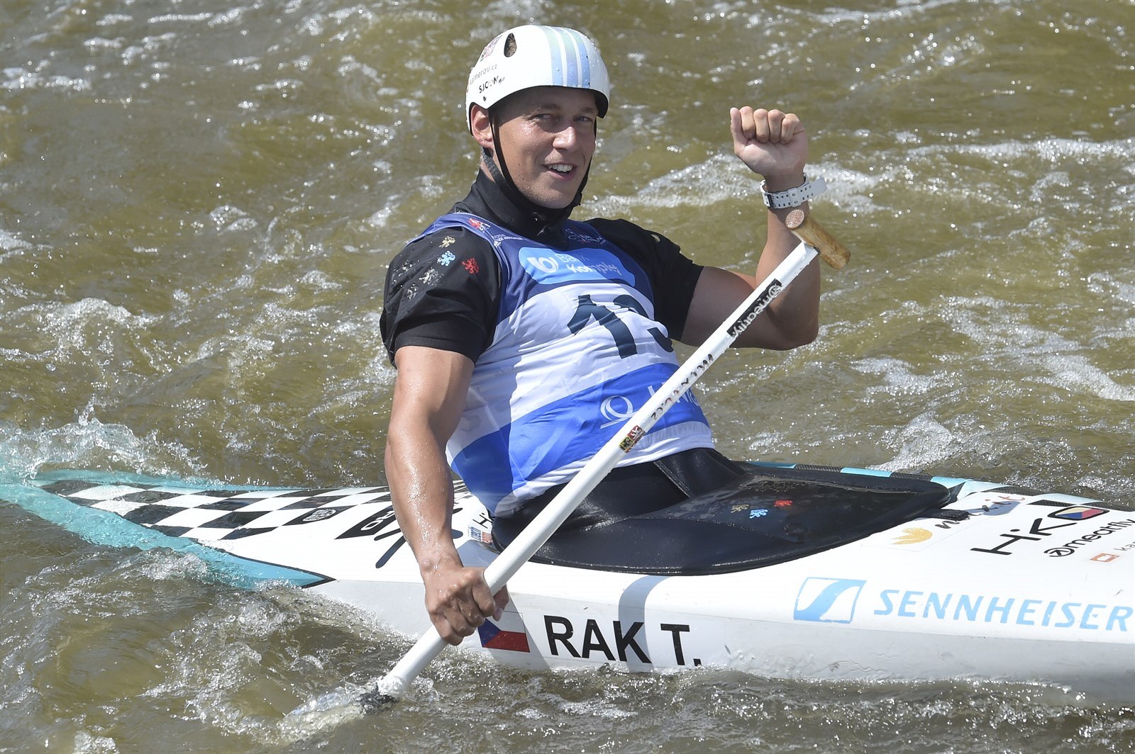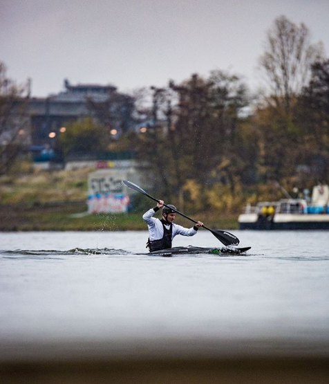 Kanoista Tomáš Rak z ČR na trati své jízdy v kategorii C1 na evropském šampionátu v Praze.