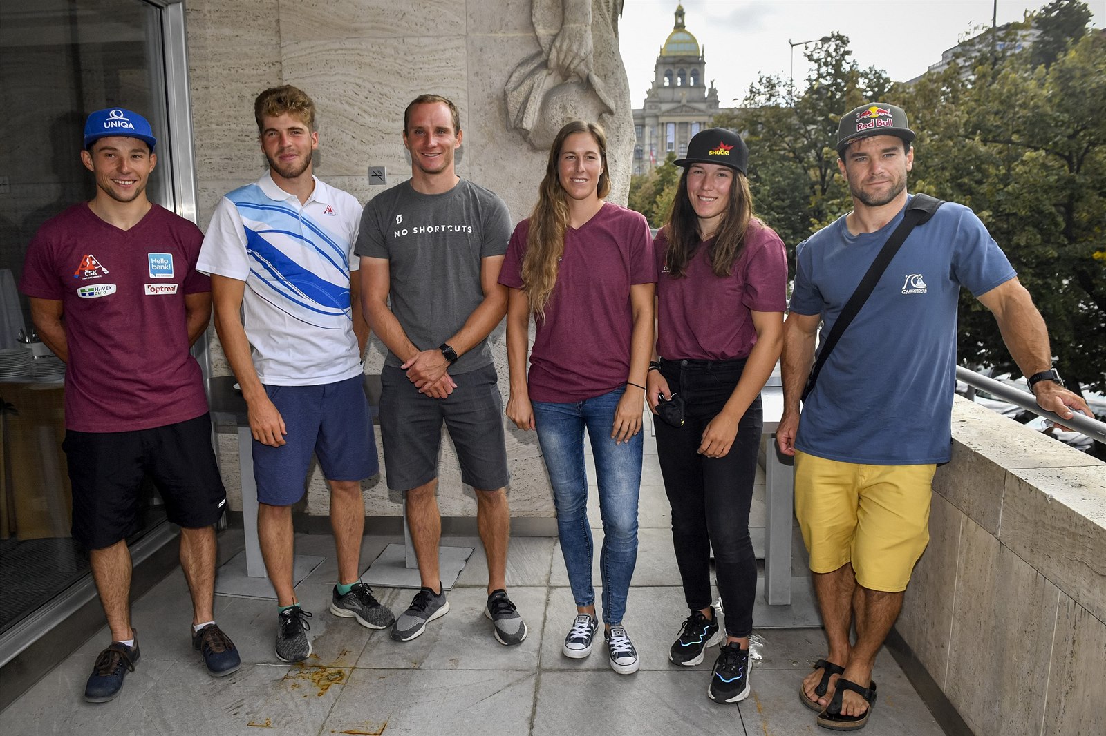 Reprezentanti ČR Jiří Prskavec, Lukáš Rohan, Vít Přindiš, Kateřina Kudějová, Tereza Fišerová a Vavřinec Hradilek před ME ve vodním slalomu.