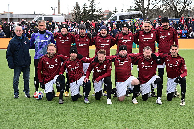 Silvestrovské pražské derby fotbalových veteránů a internacionálů Slavia - Sparta, 31. prosince 2025, Praha.
