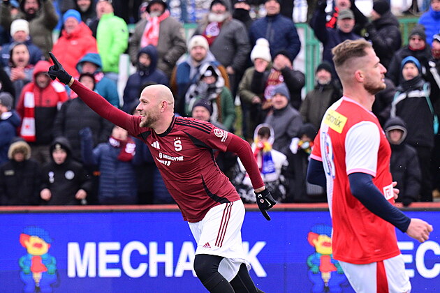 Roman Bednář slaví gól během silvestrovského pražského derby.