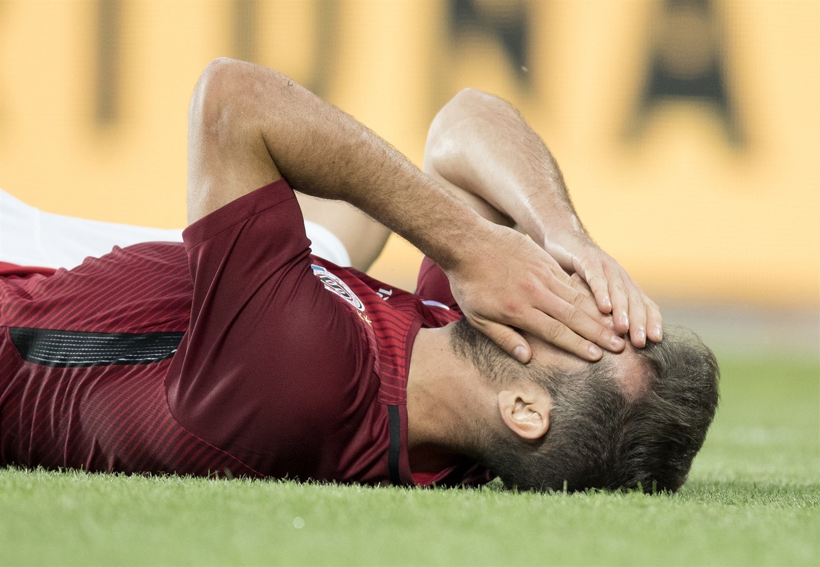 Tal Ben Chaim gestikuluje na rozhodčího v zápase proti Opavě