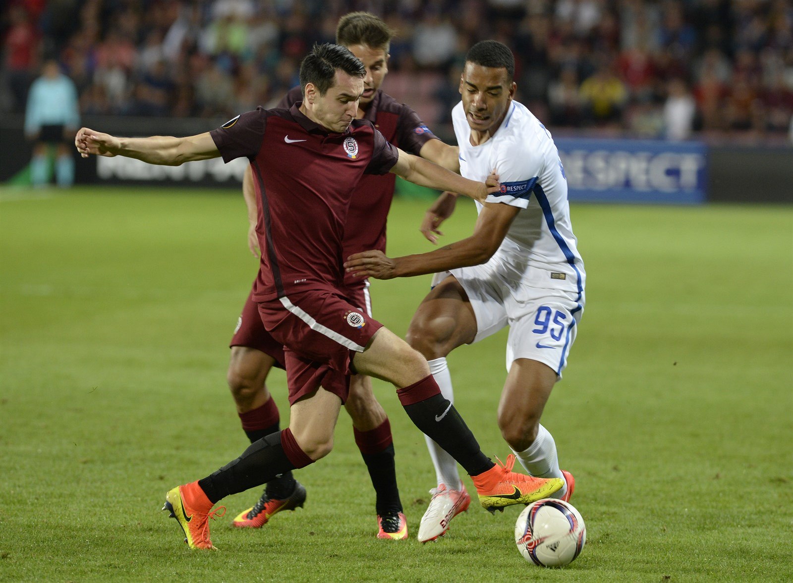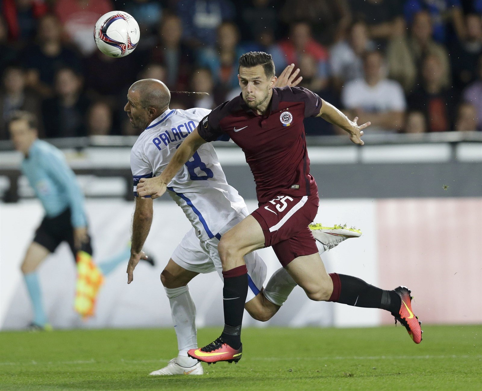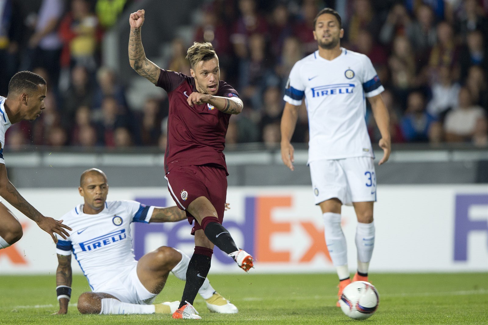 AC Sparta Praha - Inter Milán. Václav Kadlec ze Sparty střílí první branku.