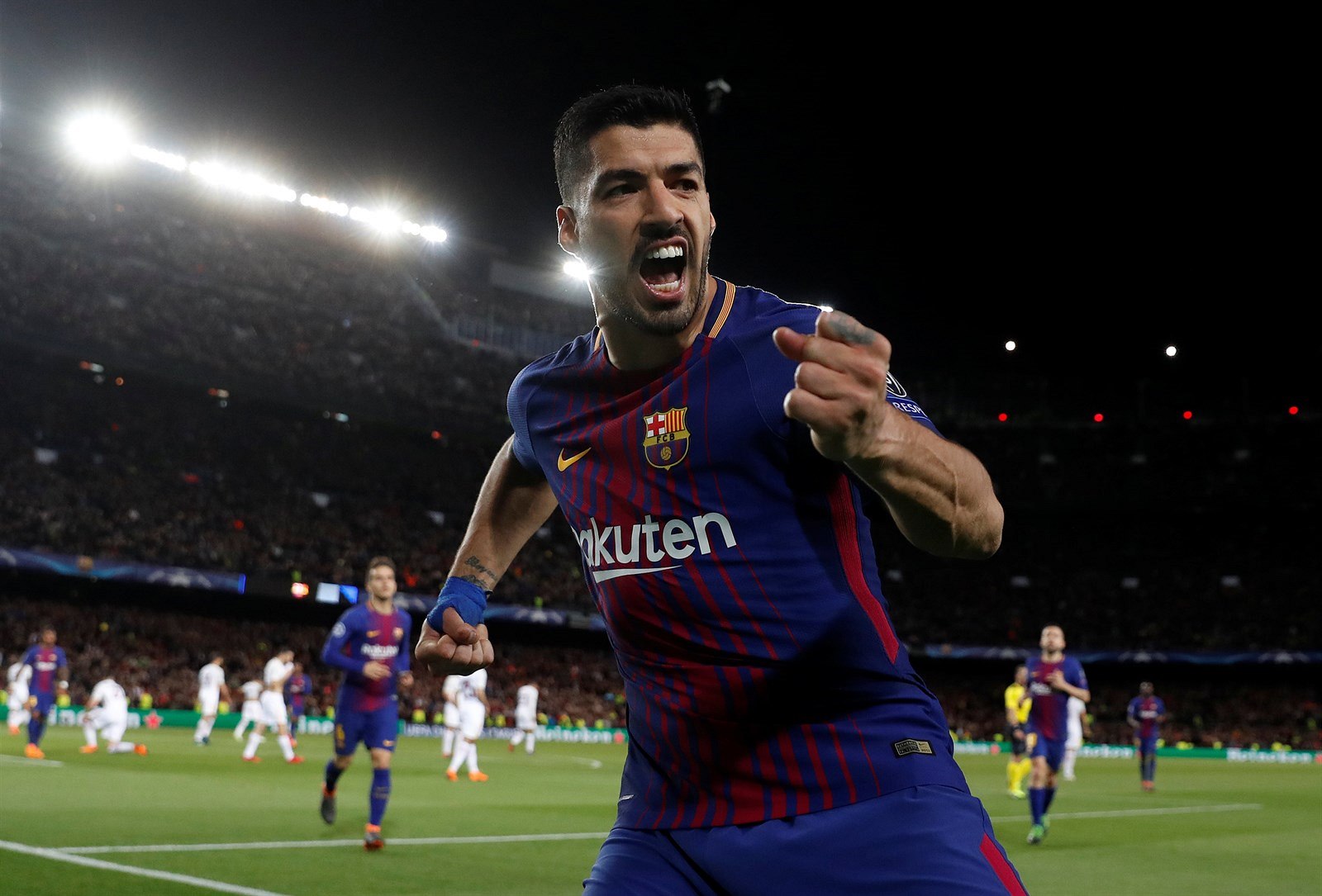 Luis Suárez slaví gól v Lize mistrů proti AS Řím