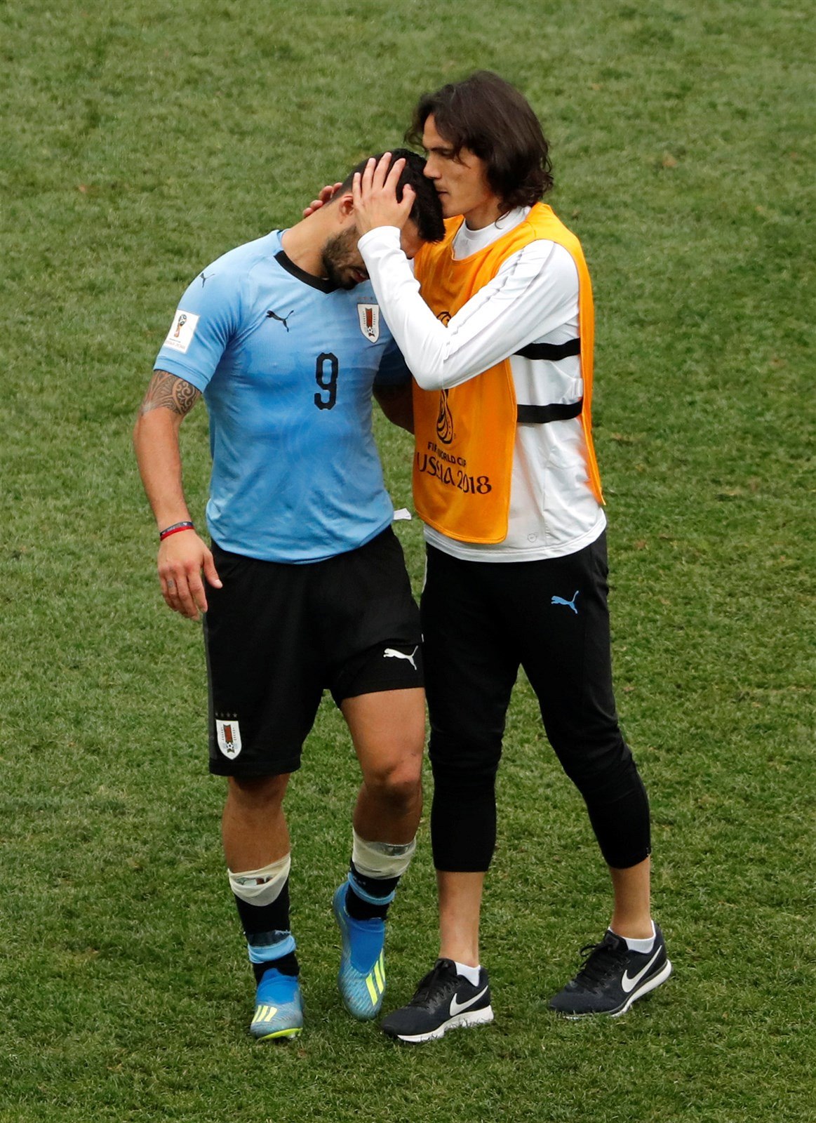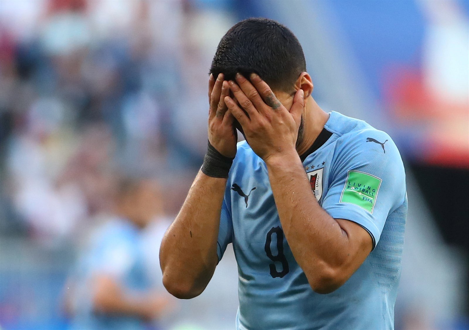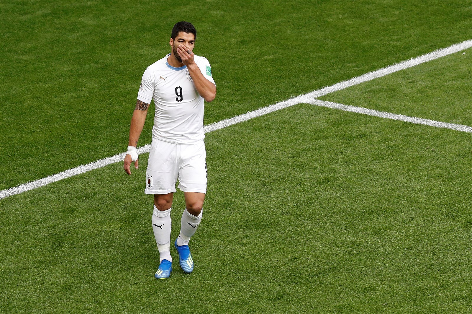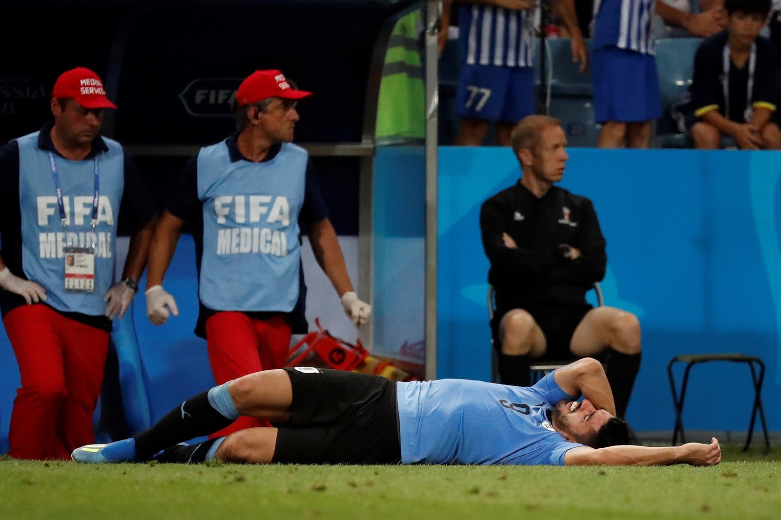 MS ve fotbale 2018, Uruguay vs. Portugalsko: zraněný Luis Suárez.