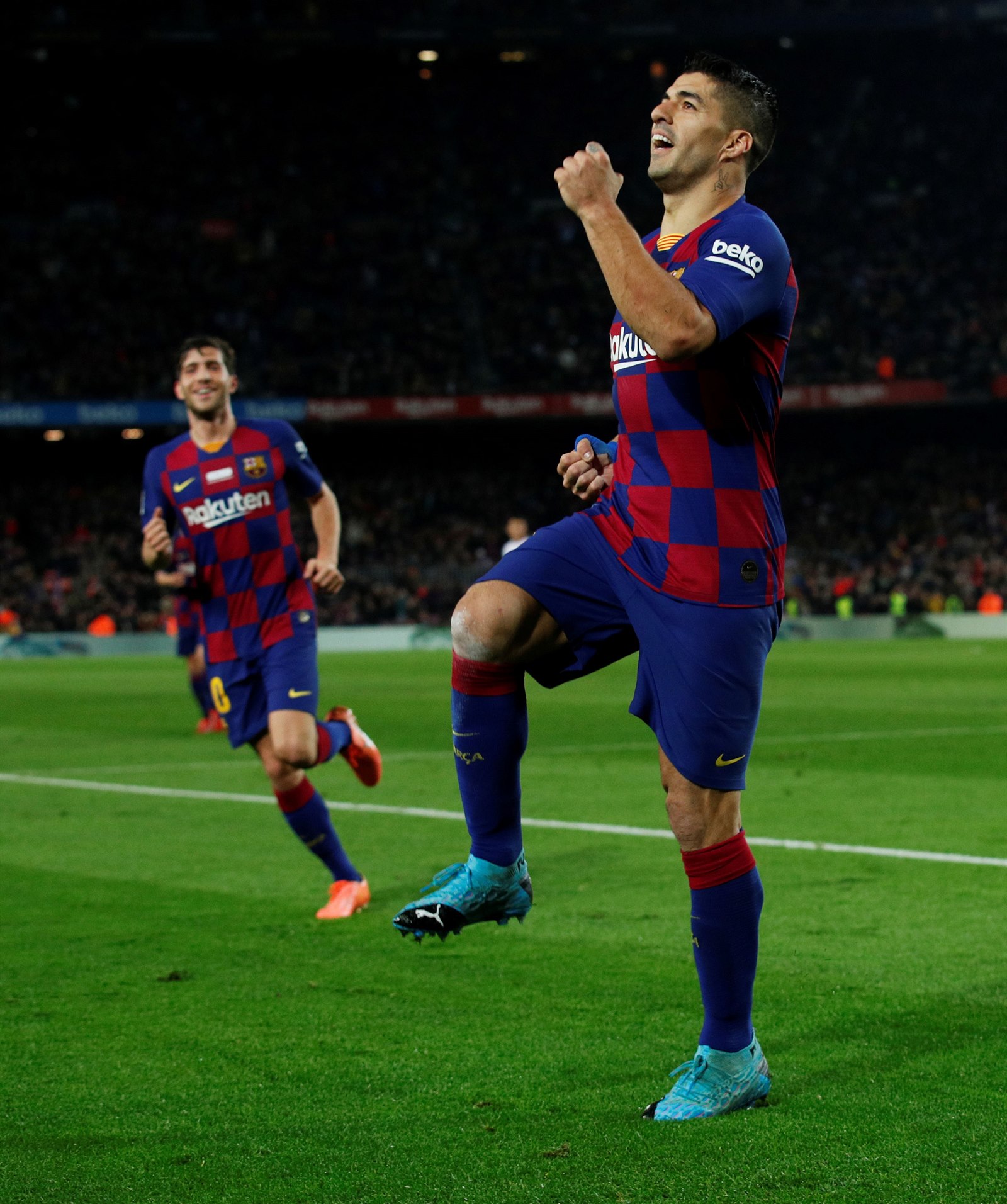 Luis Suárez se raduje z branky do sítě Espanyolu.