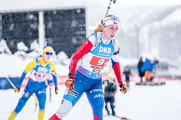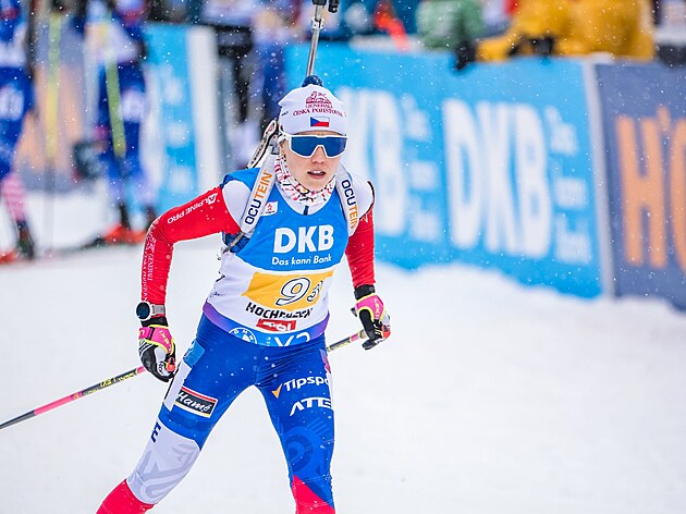 Tereza Voborníková během štafety žen v Hochfilzenu.