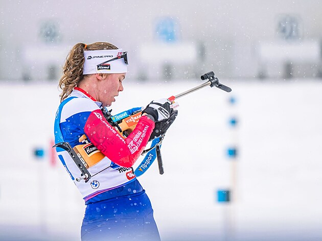 Jessica Jislová během štafetového závodu žen v Hochfilzenu.