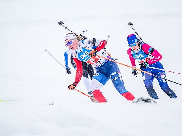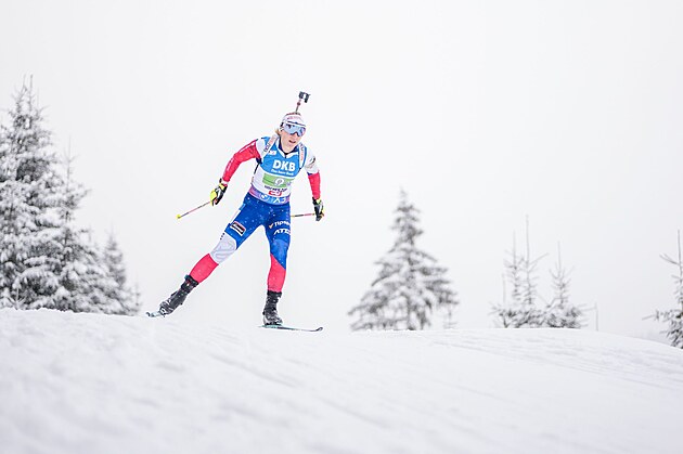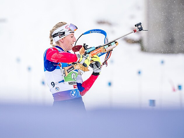 Kristýna Otcovská dobíjí během štafetového závodu žen v Hochfilzenu.