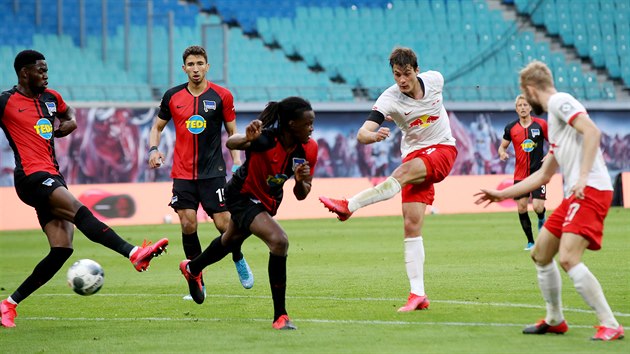Svěřenci trenéra Juliana Nagelsmanna prohrávali s Herthou po necelých deseti minutách po gólu Marka Grujiče, za další čtvrthodinu ale vyrovnal Lukas Klostermann.
