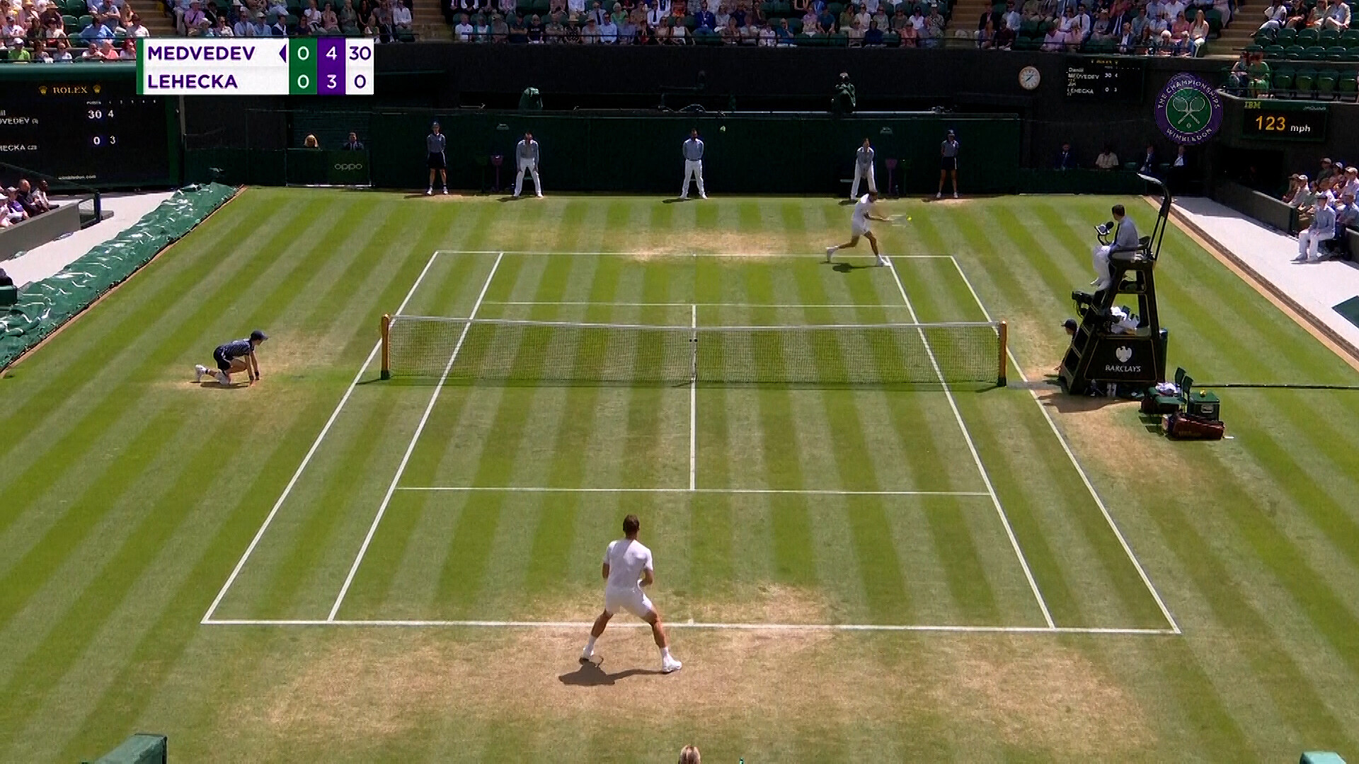 Lehečkovy míče, které měly v klidu končit v kurtu, létaly buď za něj, nebo se zachytily o síť. Ve čtvrtém gamu nabídl český tenista Medveděvovi dva brejkboly, které kdyby využil, odskočil by na alarmující skóre 1:4. Lehečka však vytasil svoje umění, hrozbu zlikvidoval a v klíčové chvíli stylovým bekhendem do protipohybu připsal za své jméno dvojku.