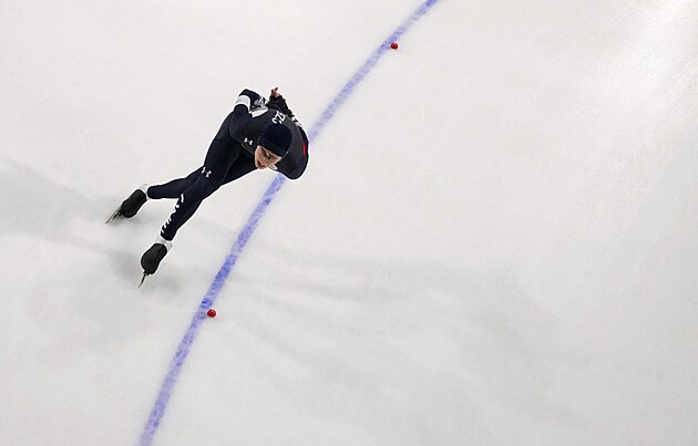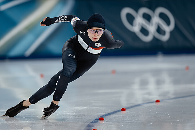 Metoděj Jílek při závodu na 5000 metrů v rychlobruslení na zimních olympijských hrách (8. února 2026)