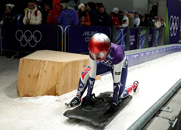 Ondřej Hyman z České republiky v akci během své třetí jízdy (8. února 2026)
