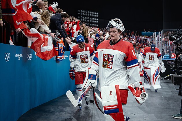 Lukáš Dostál zklamaně odchází z arény po prohře s Kanadou.