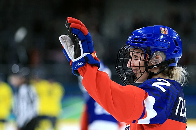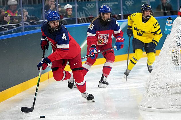 České hokejistky Daniela Pejšová a Noemi Neubauerová v utkání proti Švédsku (13. února 2026)