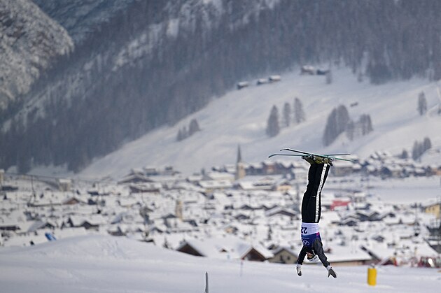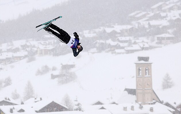 Nicholas Novák z České republiky v akci během kvalifikace mužů v akrobatickém lyžování. (20. února 2026)