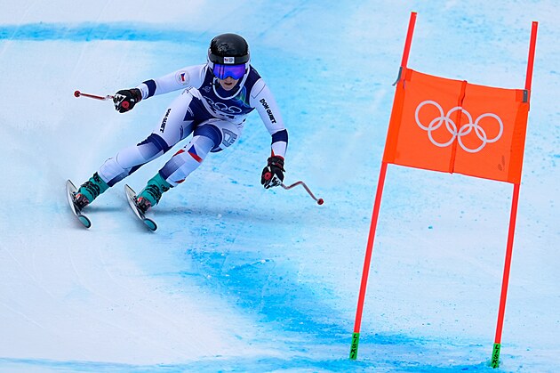 Barbora Nováková sjíždí trať alpského lyžování, sjezdovou část kombinovaného závodu žen. (10. února 2026)