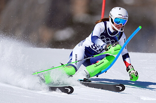 Alena Labaštová v akci během slalomu žen. (18. února 2026)
