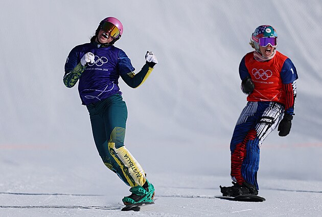 Eva Adamczyková (vlevo) vybojovala ve snowboardcrossu olympijské stříbro. (13. února 2026)