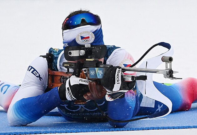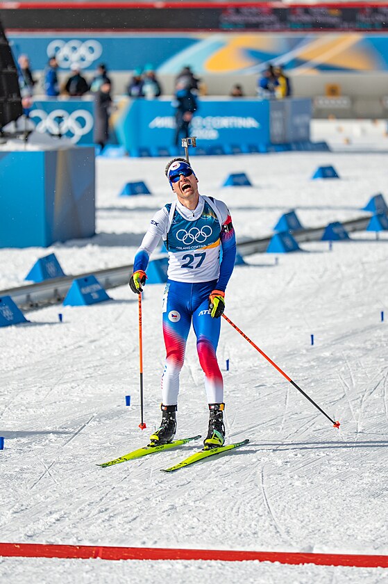 Michal Krčmář z České republiky v akci během štafety mužů 4 x 7,5 km. (17. února 2026)