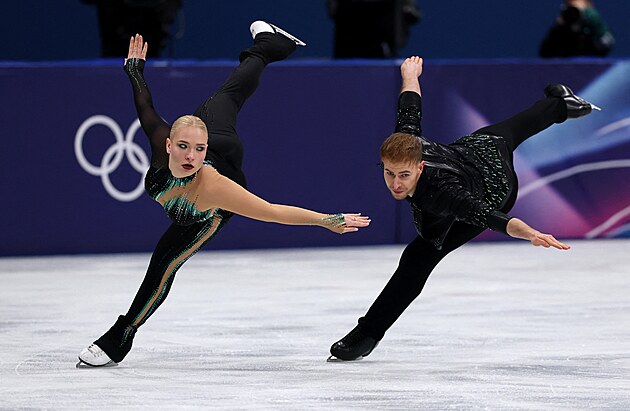 Natálie Taschlerová a Filip Taschler vystupují v soutěži rytmických tanců na zimních olympijských hrách. (9. února 2026)