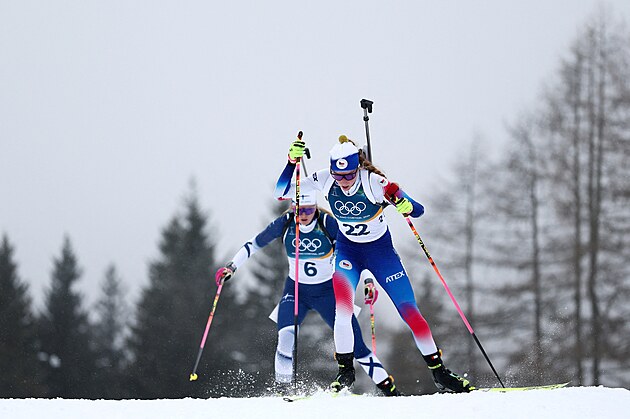Jessica Jislová (7) během ženské štafety 4 x 6 km v biatlonu. (18. února 2026)