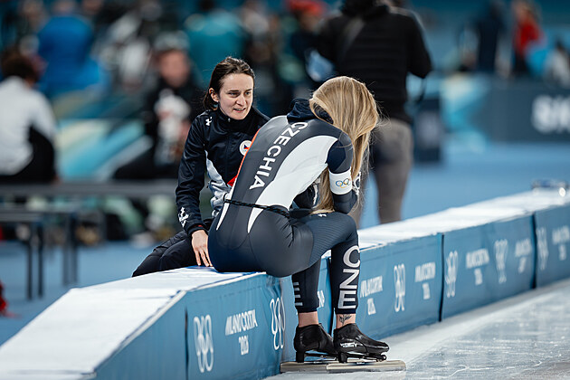 Češka Nikola Zdráhalová skončila v rychlobruslařském závodě na 1500 metrů 14. Partnerka Martina Sáblíková jí ukazovala mezičasy. (20. února 2026)