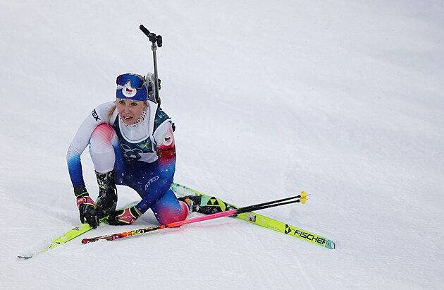 Markéta Davidová a její běžecké trápení ve sprintu biatlonistek.