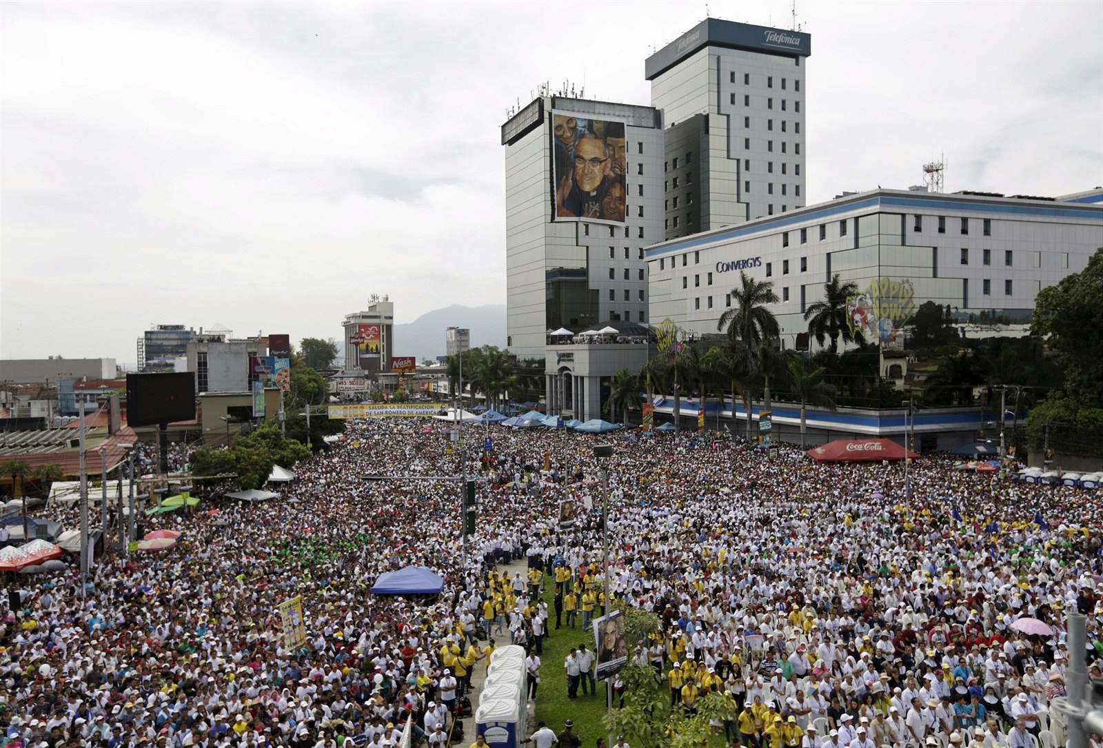 V ulicích San Salvadoru se při blahořečení Óscara Romera tísnily tisíce lidí.