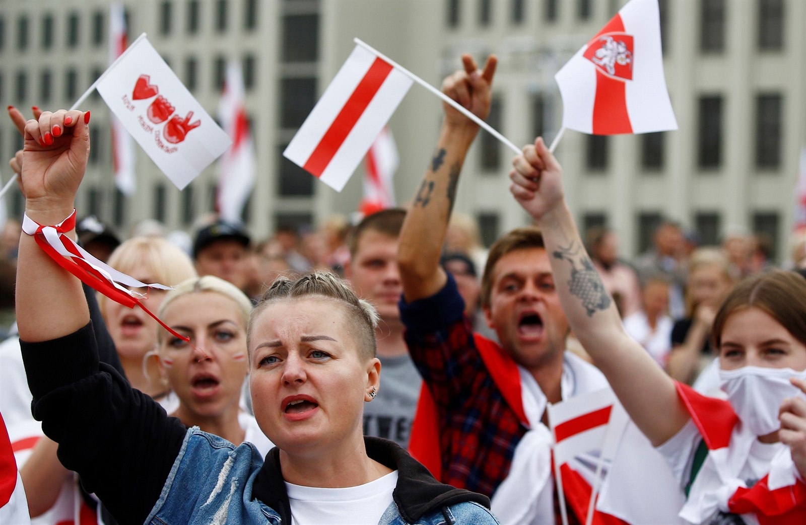 Lukašenkovi se ve volbách postavila Cichanouská, která při videokonferenci ujistila Evropský parlament, že v Bělorusku probíhá „poklidná revoluce“. „Bělorusko se probudilo. Už nejsme opozicí. Už je nás většina. Pokojná revoluce je v chodu. Není to geopolitická revoluce, je to demokratická revoluce,“ řekla europoslancům.