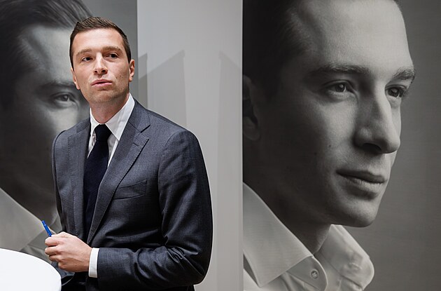 Jordan Bardella se svou autobiografií Ce que je cherche objíždí nejen Francii, před pár dny ji uvedl i v Bruselu. (13. listopadu 2024)