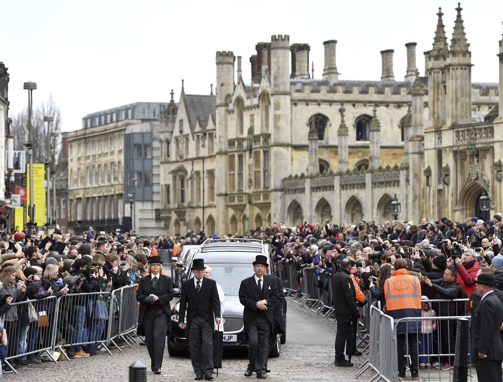 Pohřeb Stephena Hawkinga je soukromý, u kostela se však sešly zástupy fyzikových fanoušků. (31. března 2018)