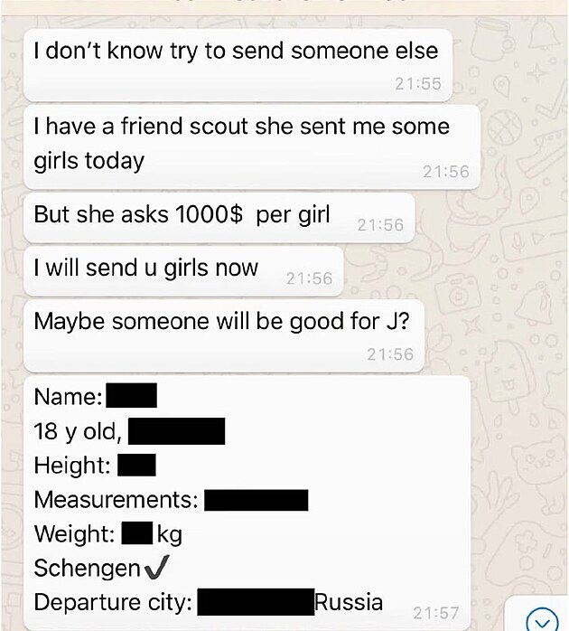Screenshot textové zprávy zřejmě obsahoval diskusi o náboru 18leté ženy, která se měla setkat s Epsteinem.