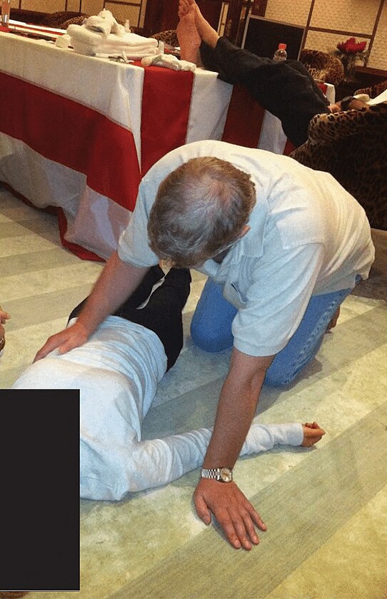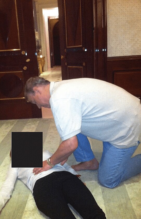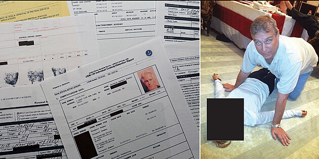 Bývalý princ Andrew klečí nad neznámou ženou, ukazují nově zveřejněné fotky takzvaných Epsteinových spisů.