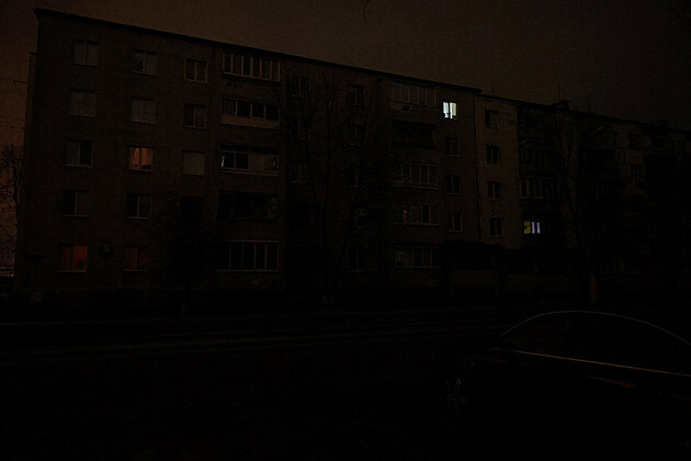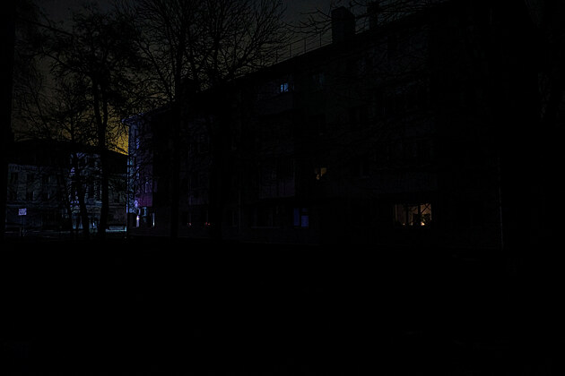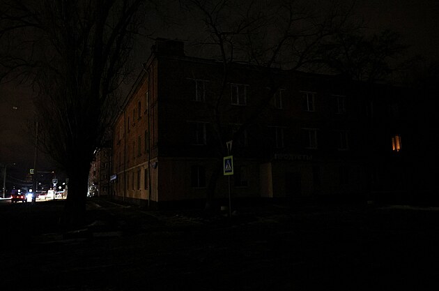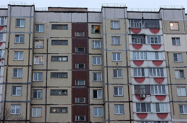Obytný dům v Belgorodu během výpadku proudu, který byl podle místních úřadů způsoben ukrajinským útokem zaměřeným na regionální energetický systém. (9. ledna 2026)